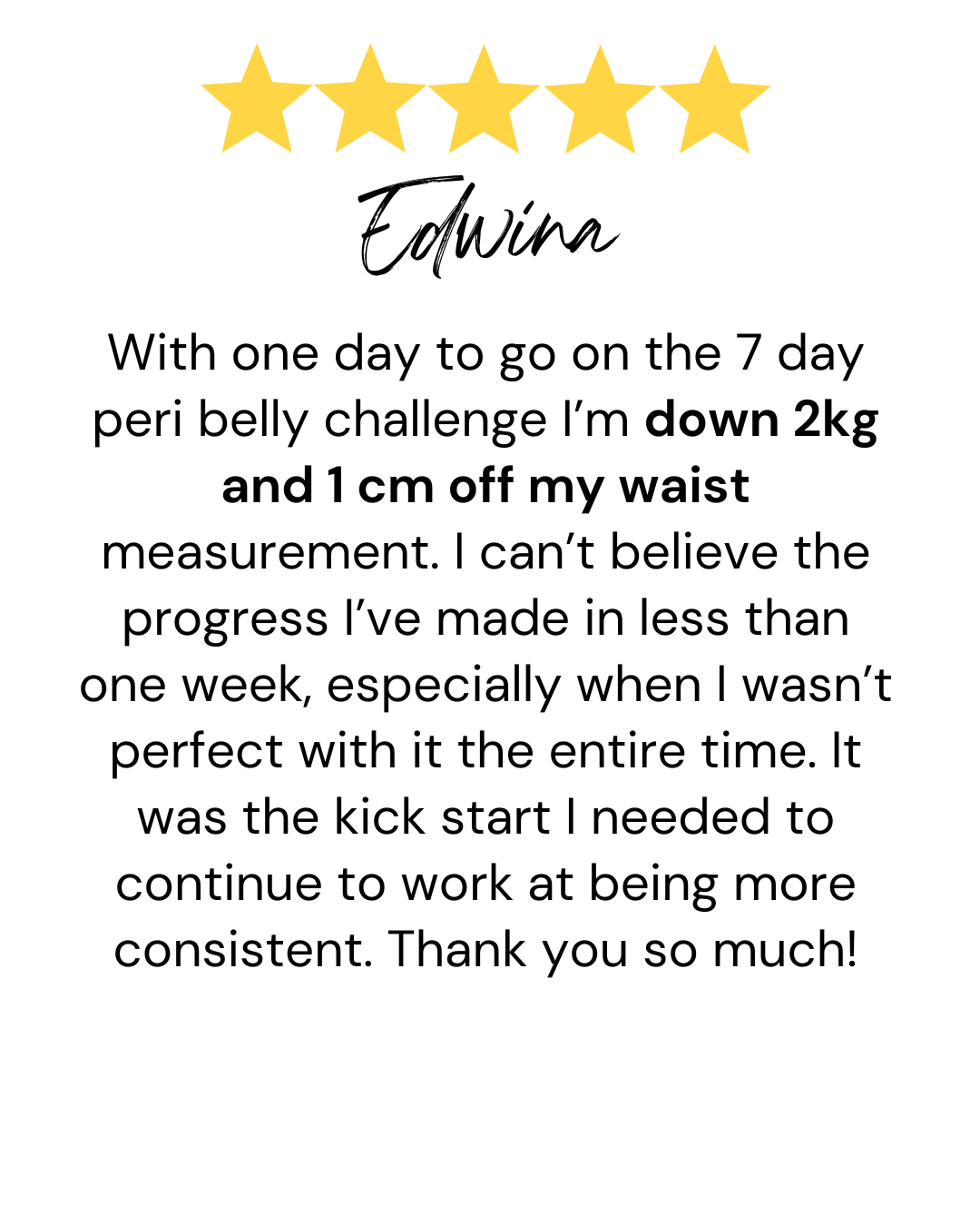 "The 7-Day Peri Set Go Belly Fat Challenge was exactly what I needed. Everything was explained so clearly, and finally understanding why my body is changing and what I can do about it made such a difference.